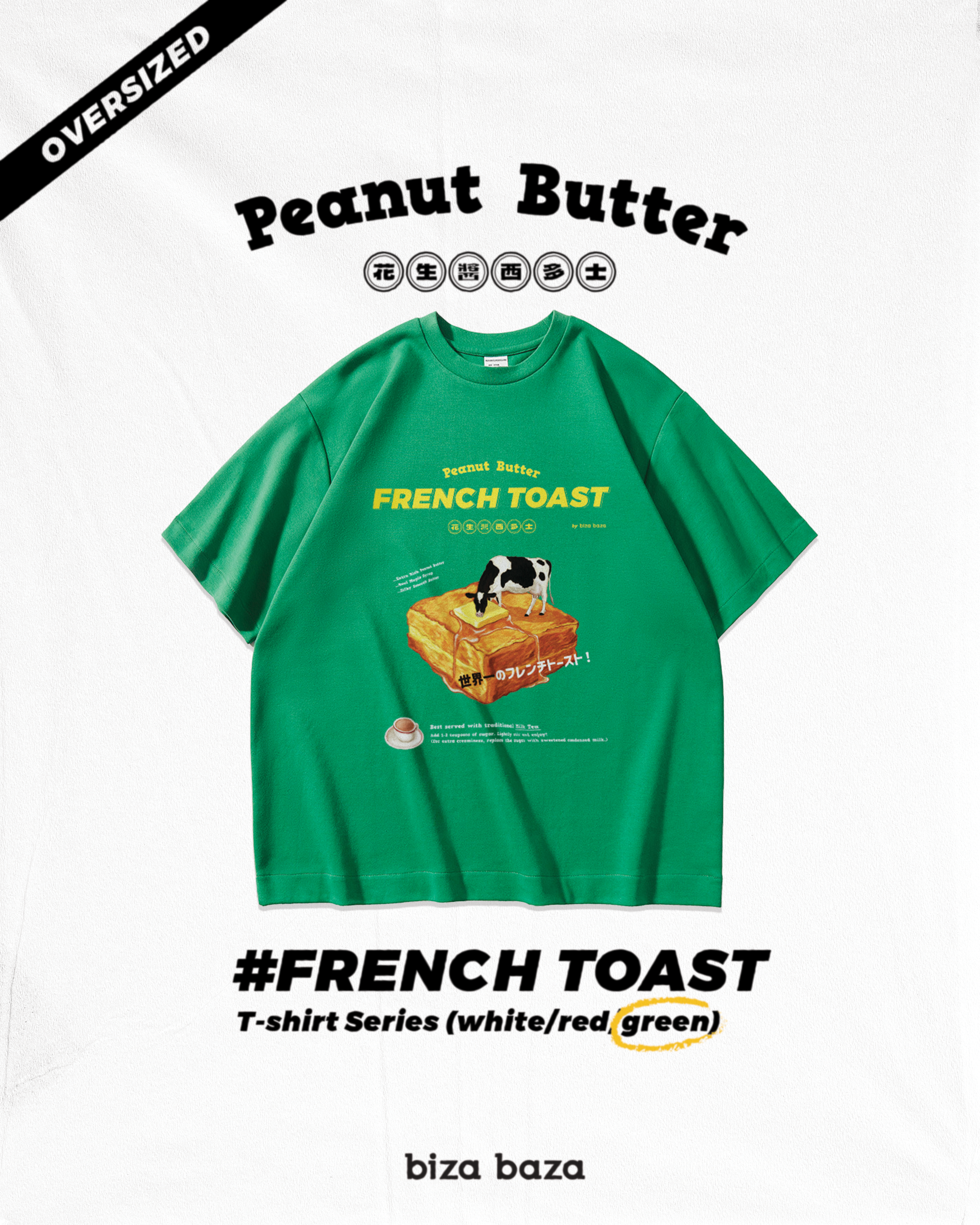![[Oversized] 10oz French Toast with Peanut Butter Retro T-shirt Series - Green](http://bizabaza.com/cdn/shop/files/IMG_9020_9f67a737-2520-4fc1-b223-f1f3aa0d5dbd.jpg?v=1710690376&width=1445)