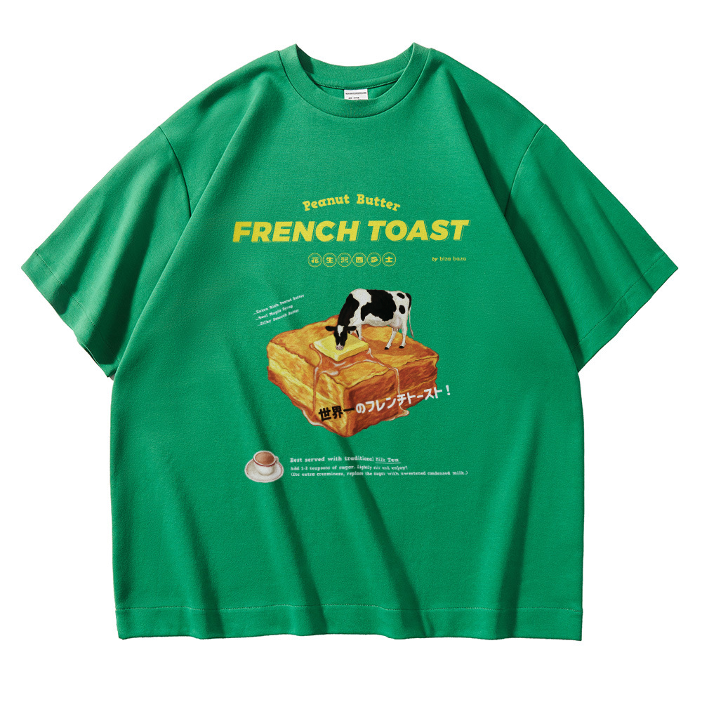 [Oversized] 10oz French Toast with Peanut Butter Retro T-shirt Series - Green