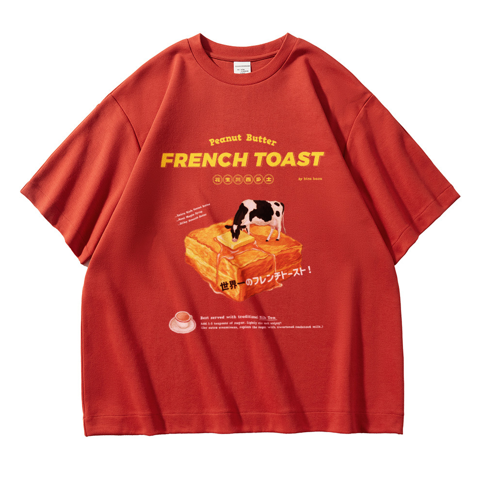[Oversized] 10oz French Toast with Peanut Butter Retro T-shirt Series - Red